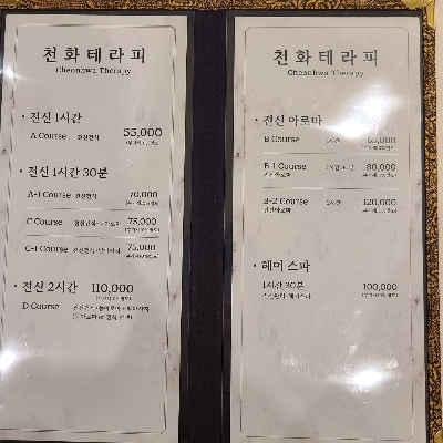 저희 천화 테라피는 전 직원이 자격증을 보유한 베테랑 관리사들 이며, 주 종목이 다르셔서 그거에 맞게 코스도 따로있으니 몸상태에 맞게 지정해서 받으시는걸 추천드립니다